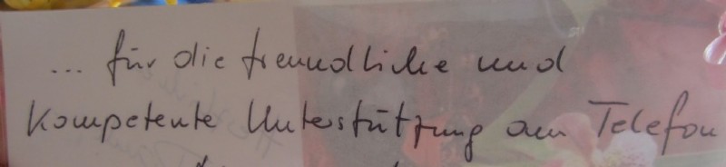 ......für die freundliche und kompetente Unterstützung am Telefon.