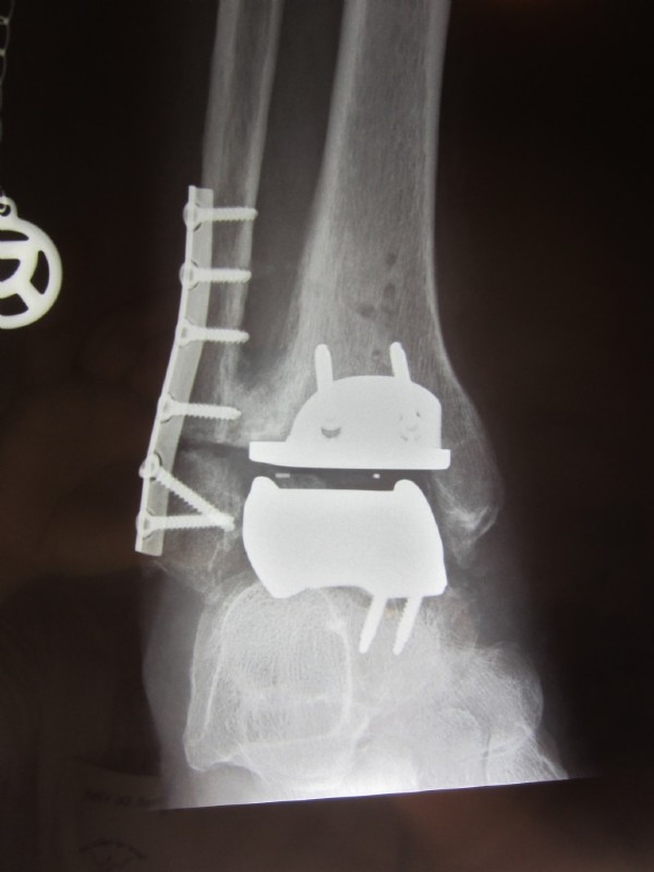 Herr Karl H. stürmt schnellen Schrittes in die Ordination. Vor 6 Monaten haben wir ihm eine zementfreie Endoprothese des Sprunggelenkes (künstliches Sprunggelenk) eingesetzt, nachdem eine massive Arthrose (Gelenkzerstörung durch Abnützung nach Trümmerbruch) das Gehen zunehmend schmerzhaft und beschwerlich gemacht hatte.