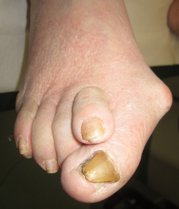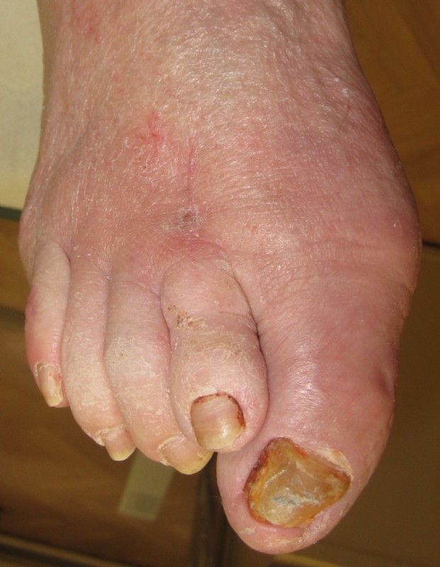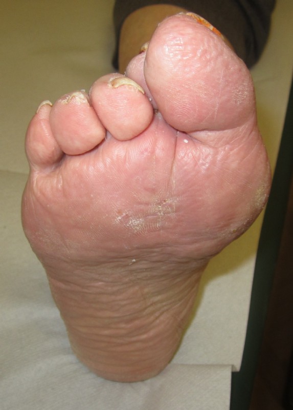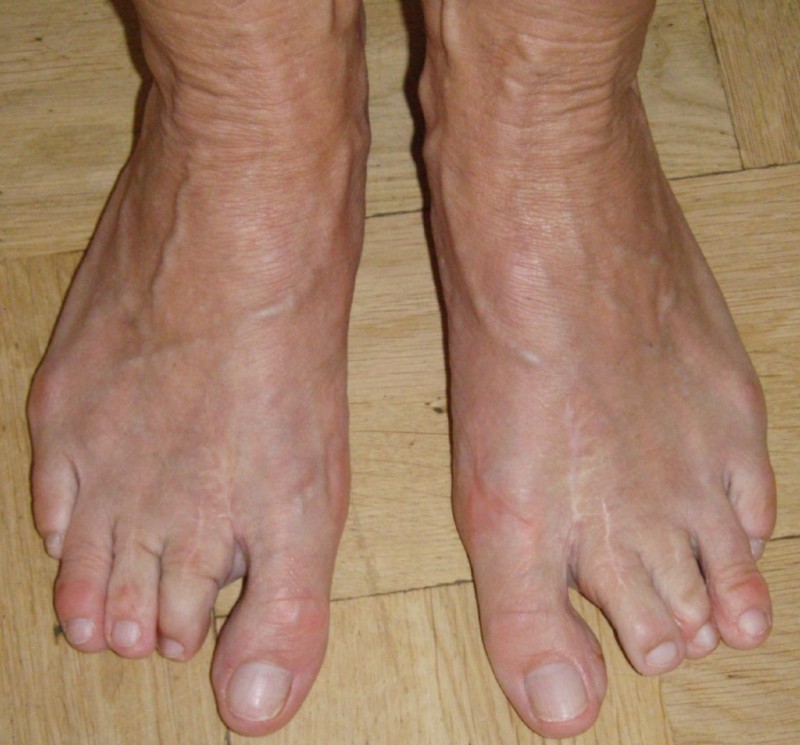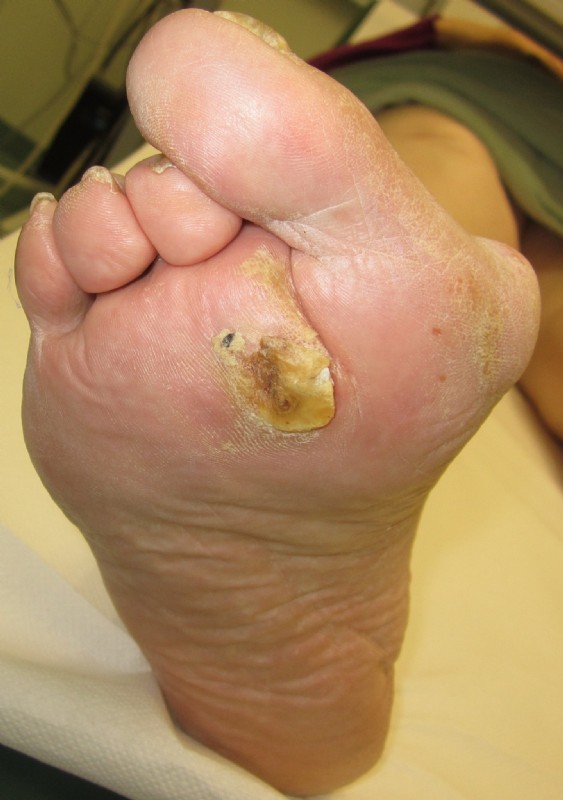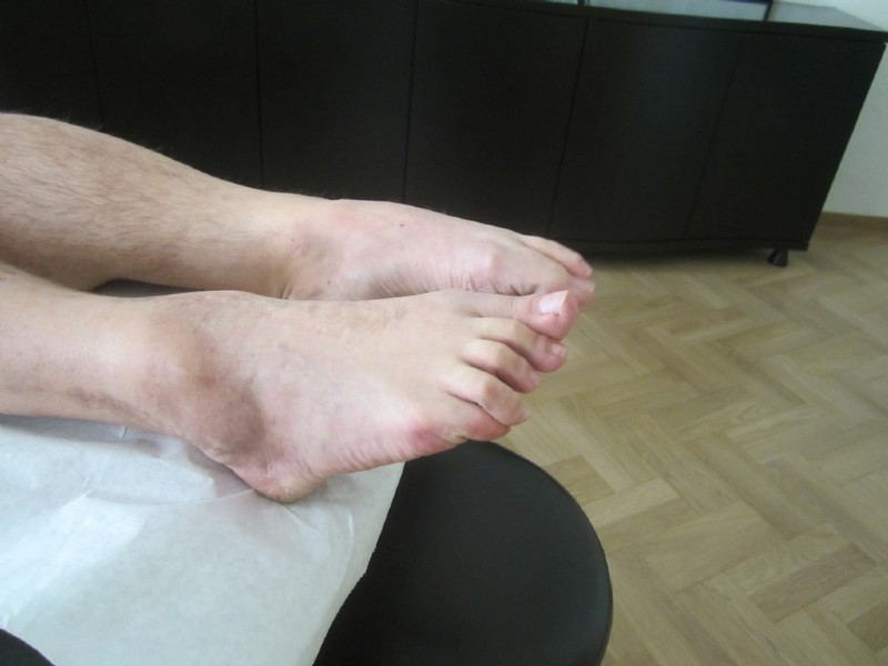 Die Abweichung der Großzehe störte nicht so sehr, wie die schmerzhafte Schwiele mit Geschwür an der Fußsohle.