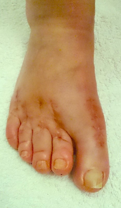 Bild rechts: Nach 3 Monaten voll funktionstüchtiger und schöner Fuß, hohe Absätze können getragen werden.