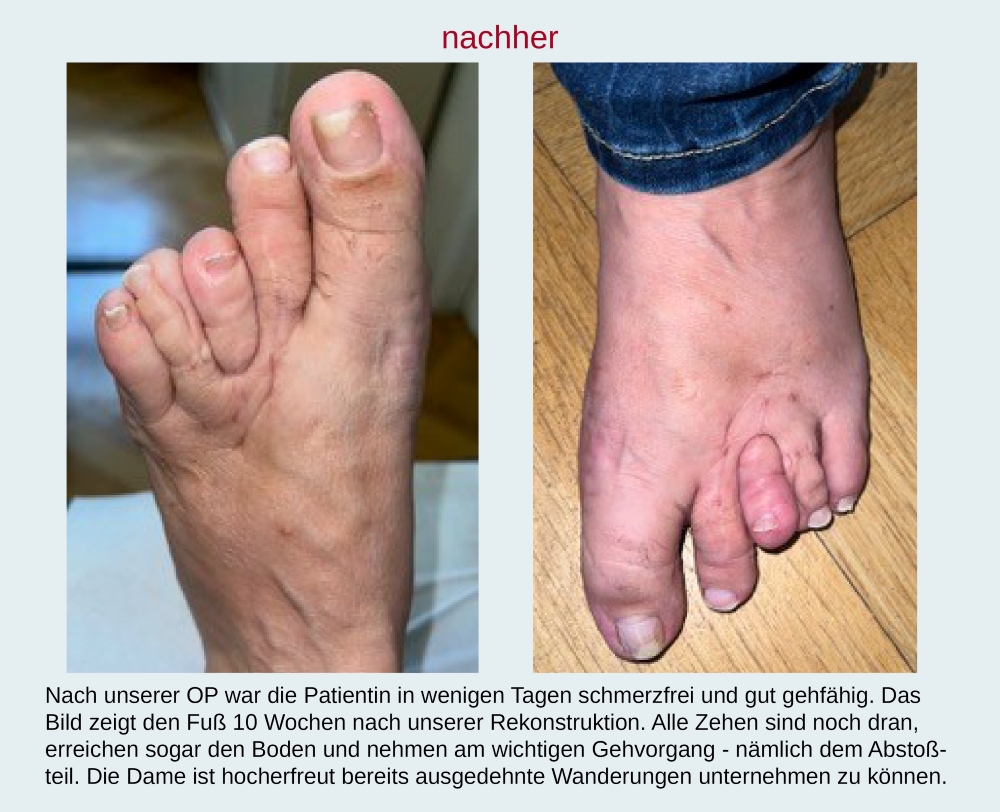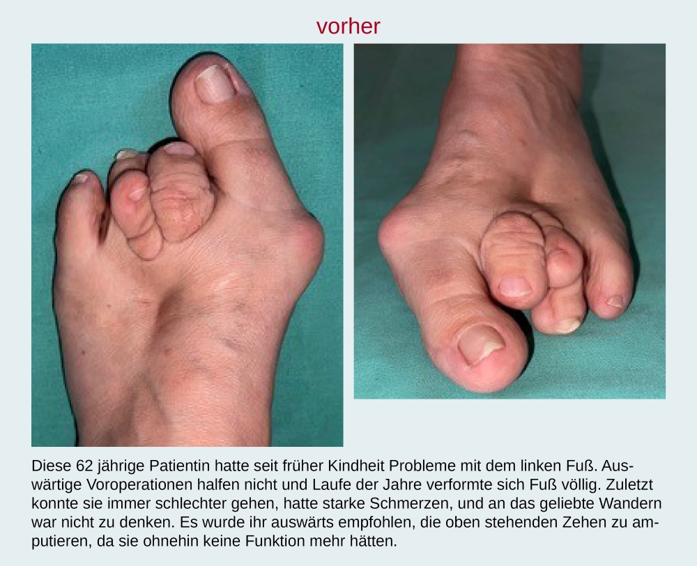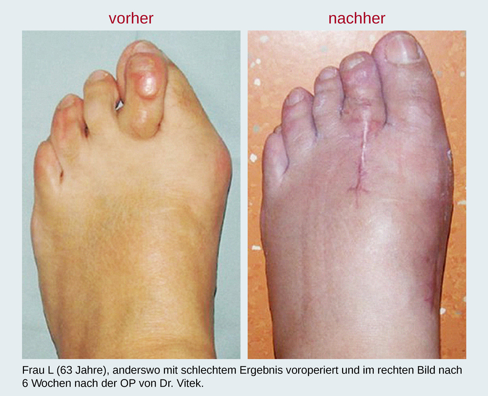 Hier sehen Sie eine Sammlung von Fußbildern vor und nach einer von Dr. Michael Vitek durchgeführten Operation.